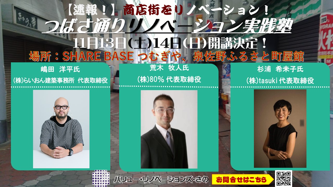 「さの町場 まちやど実践ワークショップ」を、さの町場エリアにある商店街に特化した実践ワークショップ「つばさ通りリノベーション実践塾」の開催が決定しました!