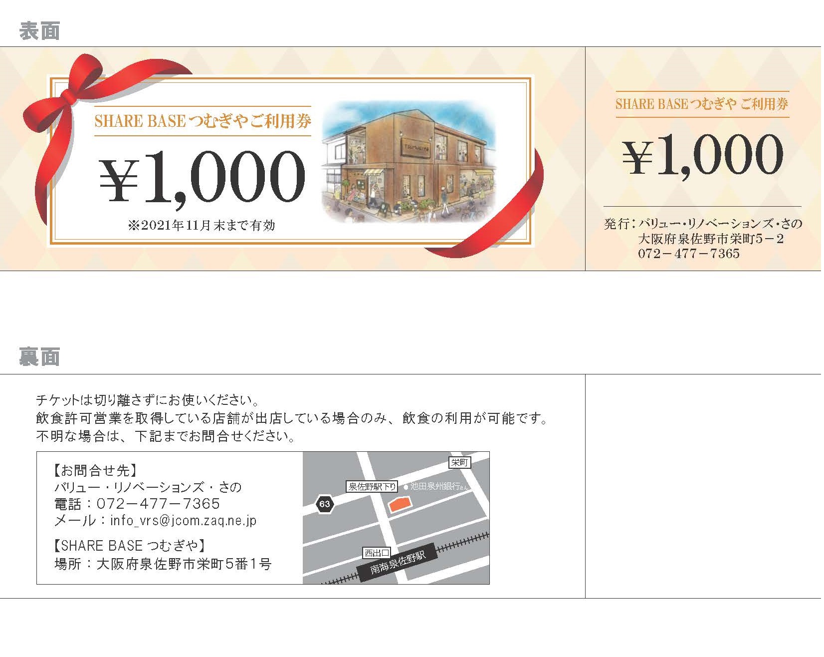 【お知らせ】つむぎやチケットの有効期限について2021.11.09お知らせSHARE BASEつむぎや今年1月18日(月)まで実施したクラウドファンディングのリターンで「つむぎやチケット」を選択された方、及びつむぎやキッチンのご利用キャンペーンで「つむぎやチケット」を当選された方へお知らせです。チケットの有効期限は今月11月末日までとなっておりますので、まだご利用されていないチケットがございましたら、お早めにご利用してください。対象となるチケットは下の画像のものとなりますので、ご確認よろしくお願いします。
