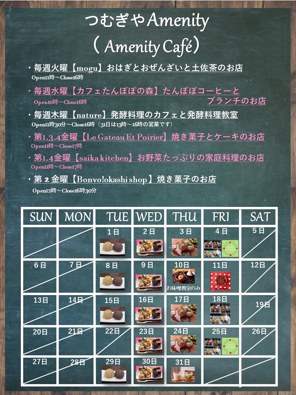 つむぎやAmenity 3月出店カレンダー2022.02.28お知らせつむぎやAmenity 3月出店カレンダーになります。状況によっては、出店内容が変更となる場合がありますのでご了承の程宜しくお願いいたします。