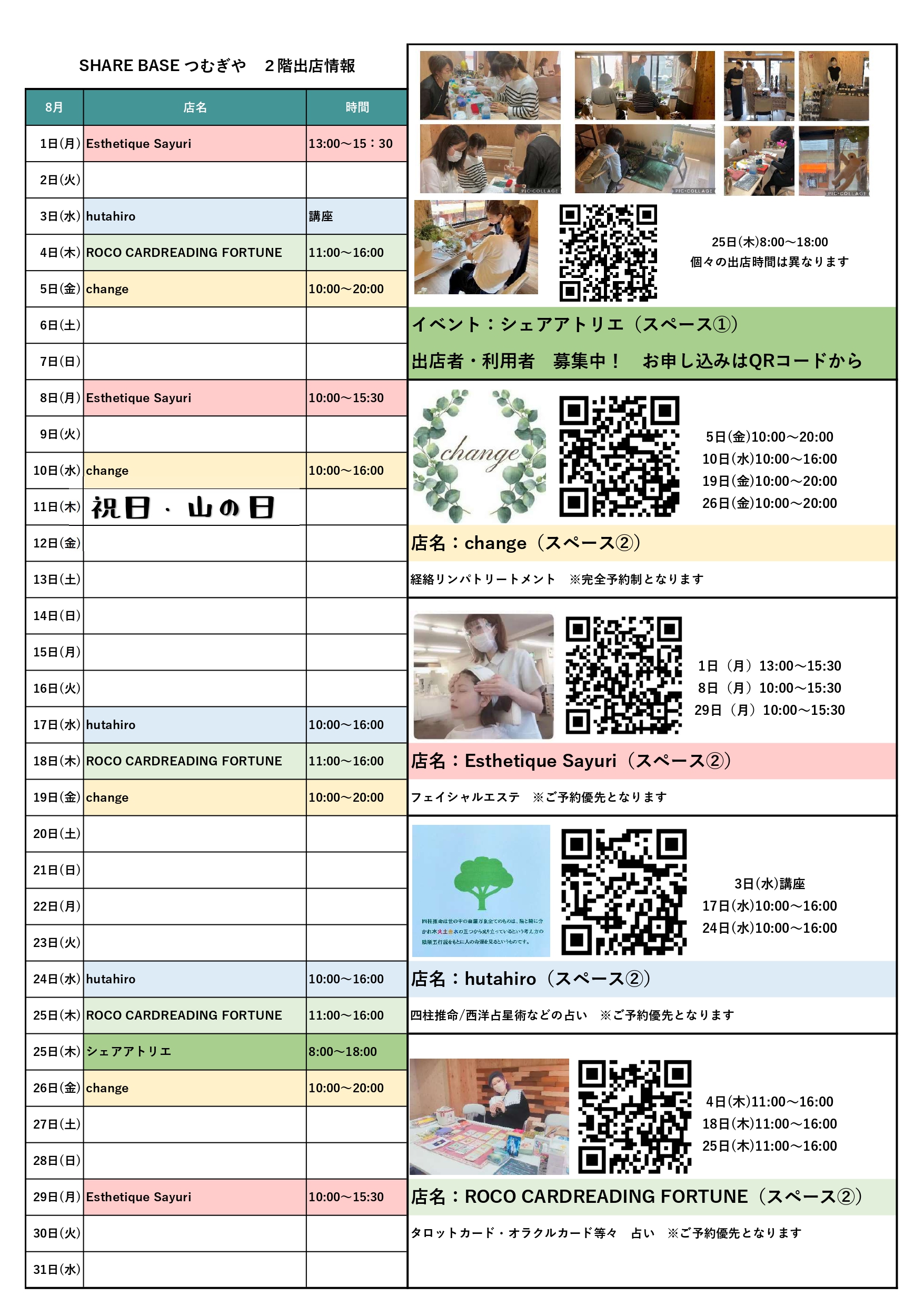 【SHARE BASE つむぎや2階】出店カレンダー更新致しました