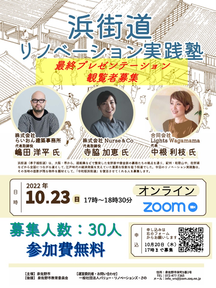 【浜街道リノベーション実践塾】最終プレゼンテーション観覧者募集!