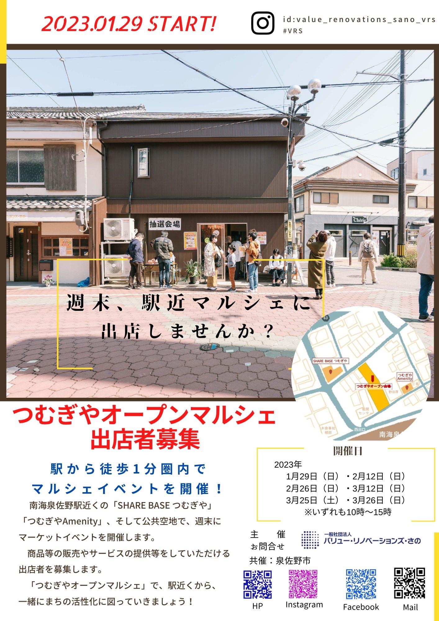 来年1月末から3月末にかけて、南海泉佐野駅近くのSHAREBESEつむぎや