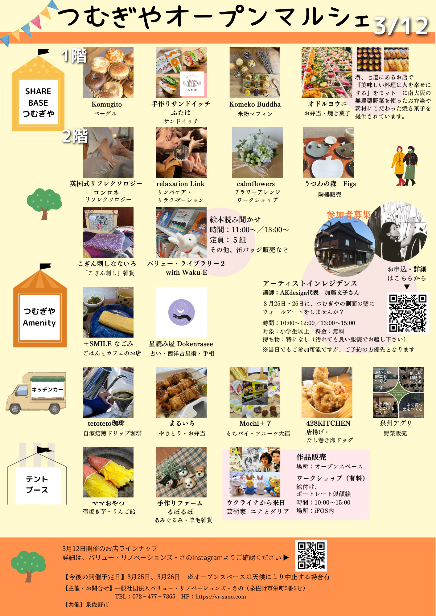 3月12日(日)第4回つむぎやオープンマルシェご案内