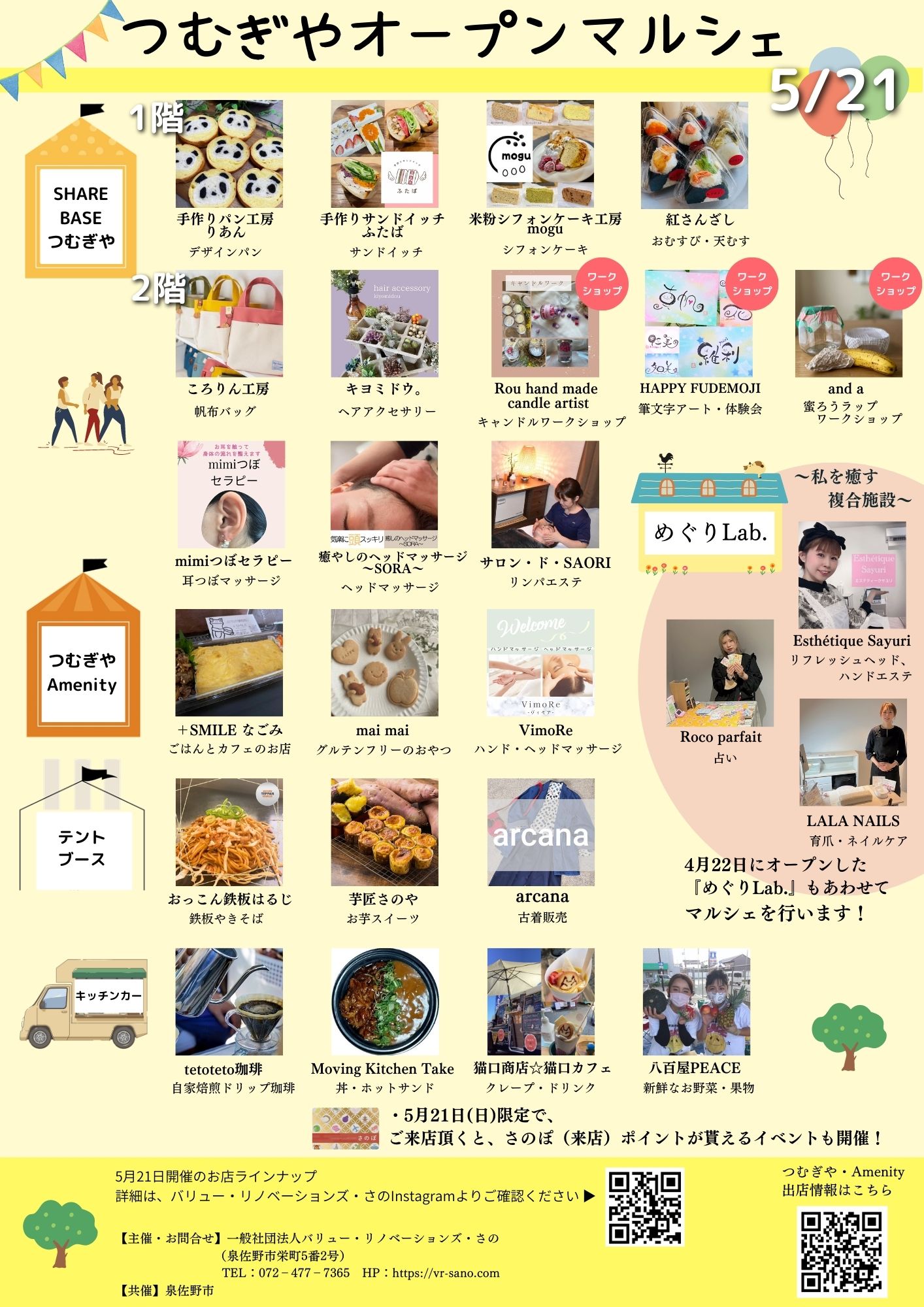 つむぎやオープンマルシェ5月21日(日)開催します!!