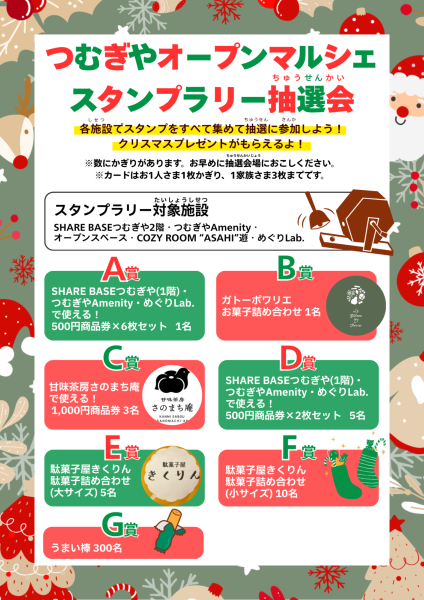 施設ごとに設置したスタンプをもらうと抽選でクリスマスプレゼントがもらえる企画も開催🎁