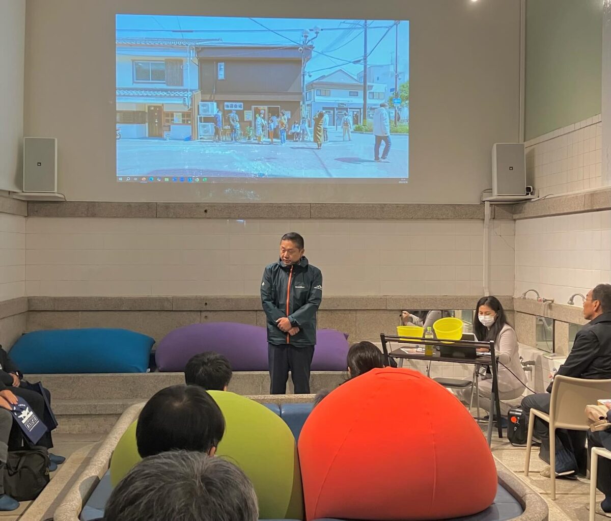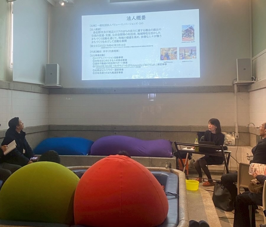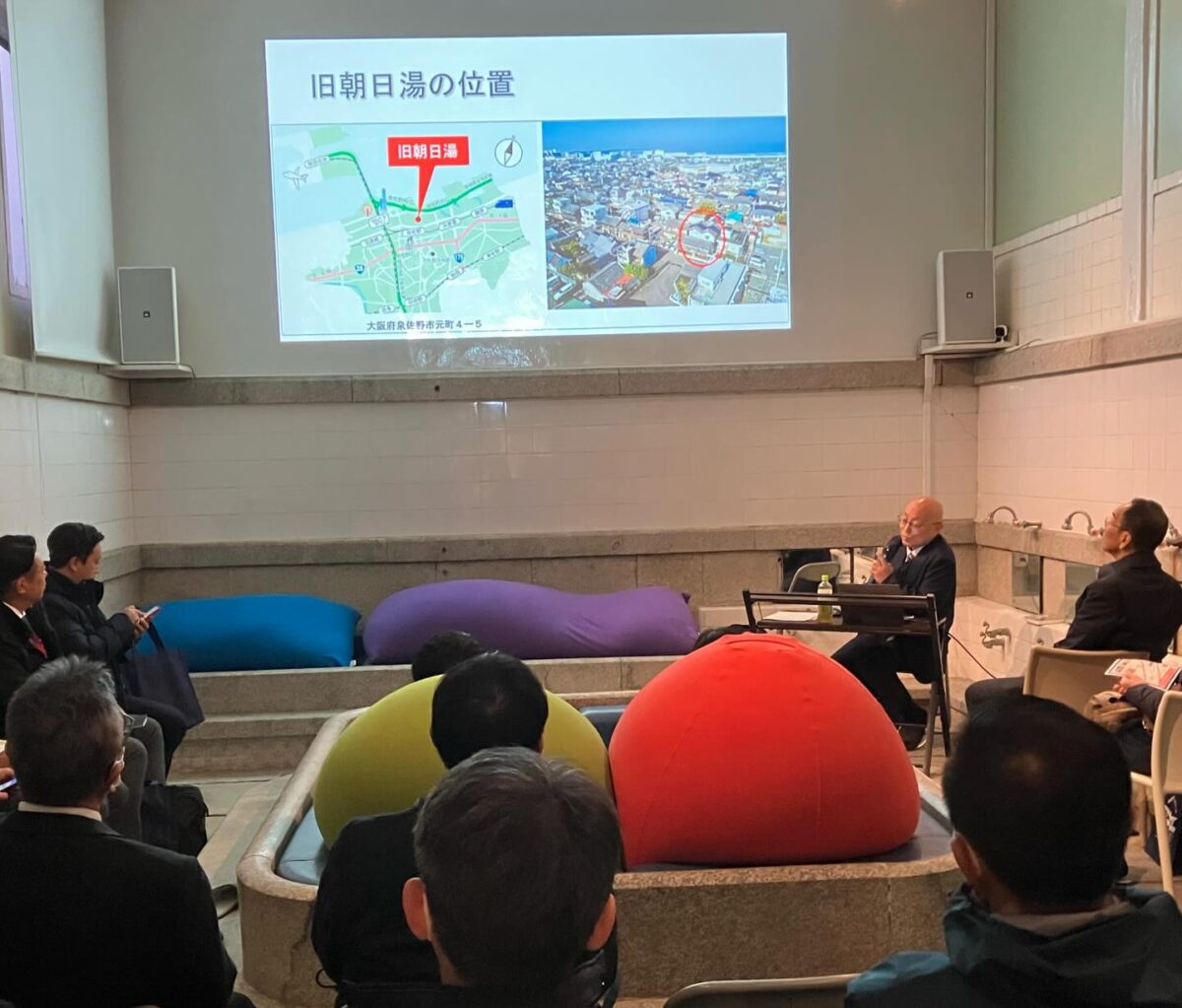 第一部は泉佐野周辺のさのまちばのフィールドワーク、商店街周辺のリノベーション物件の見学と第二部として、バリュー・リノベーションズ・さのの取組みについての説明と、文化財保護課様より国登録文化財レトロ銭湯の活用についての説明がありました。