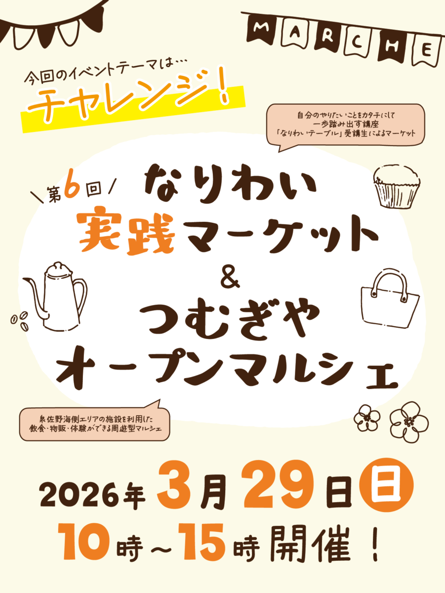 【イベント情報】第6回なりわい実践マーケット&つむぎやオープンマルシェ3月29日(日)開催!