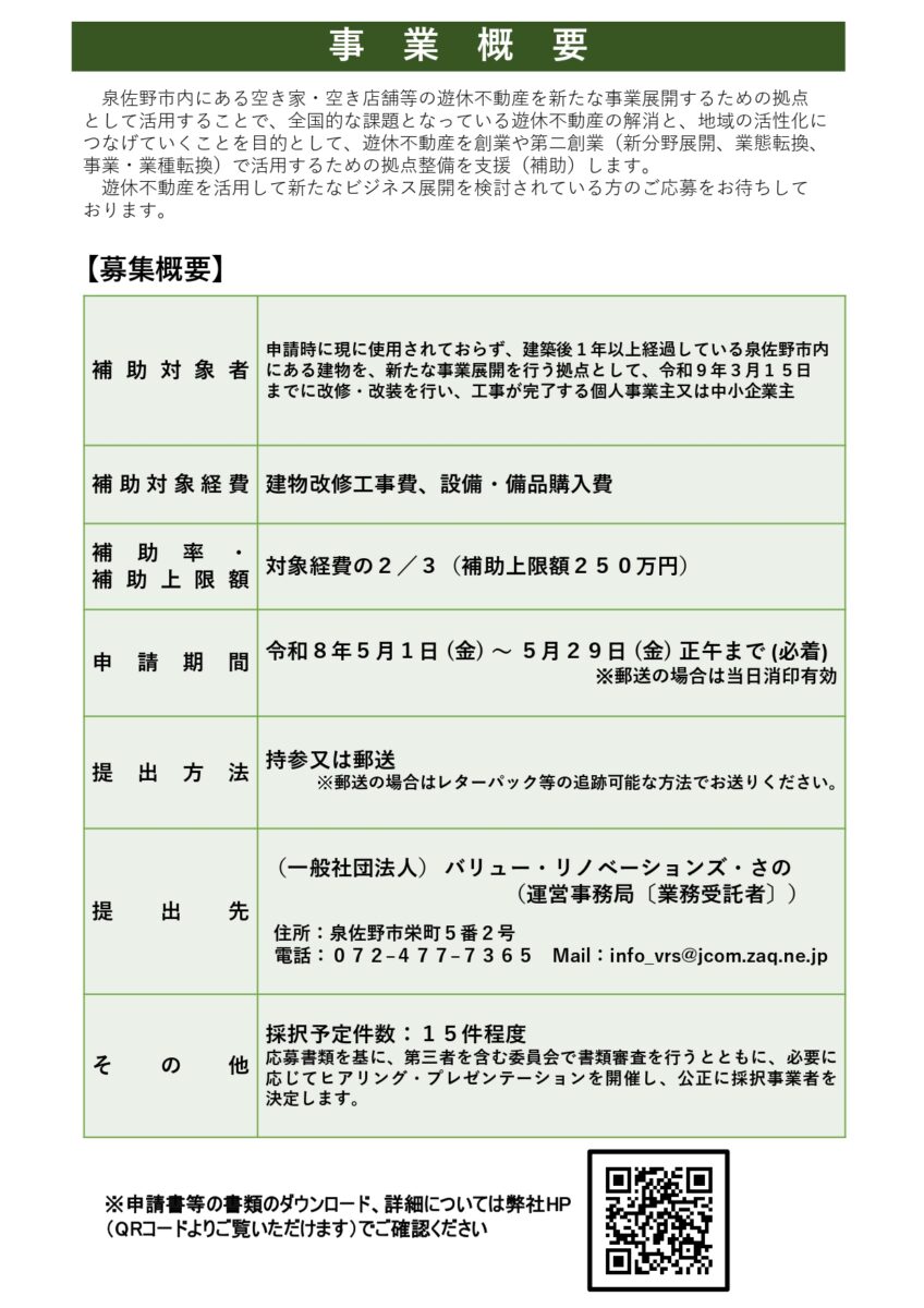 運営受託者/お問合せ先:(一社)バリュー・リノベーションズ・さの(072-477-7365/info_vrs@jcom.zaq.ne.jp)