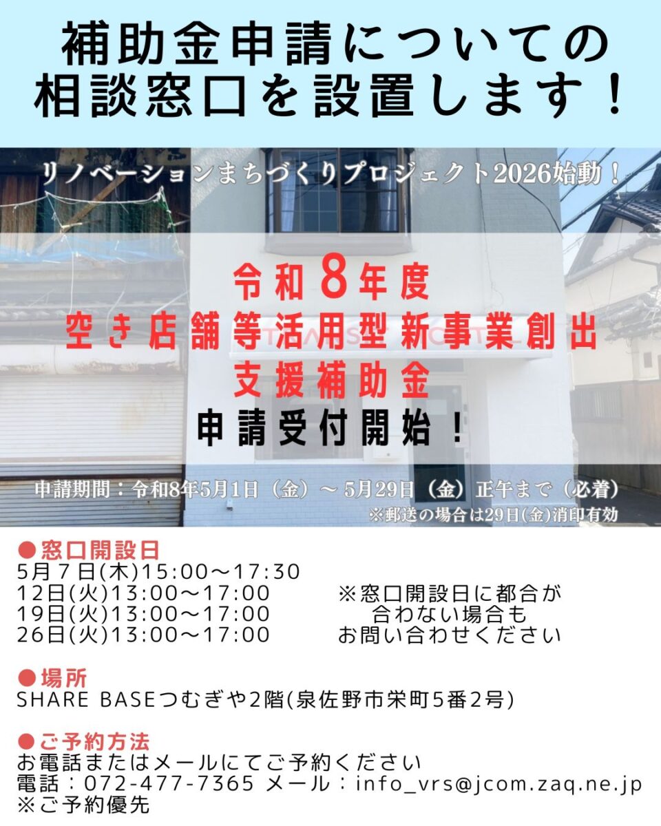 令和8年度空き店舗等活用型新事業創出支援補助金申請についての相談窓口を設置します!