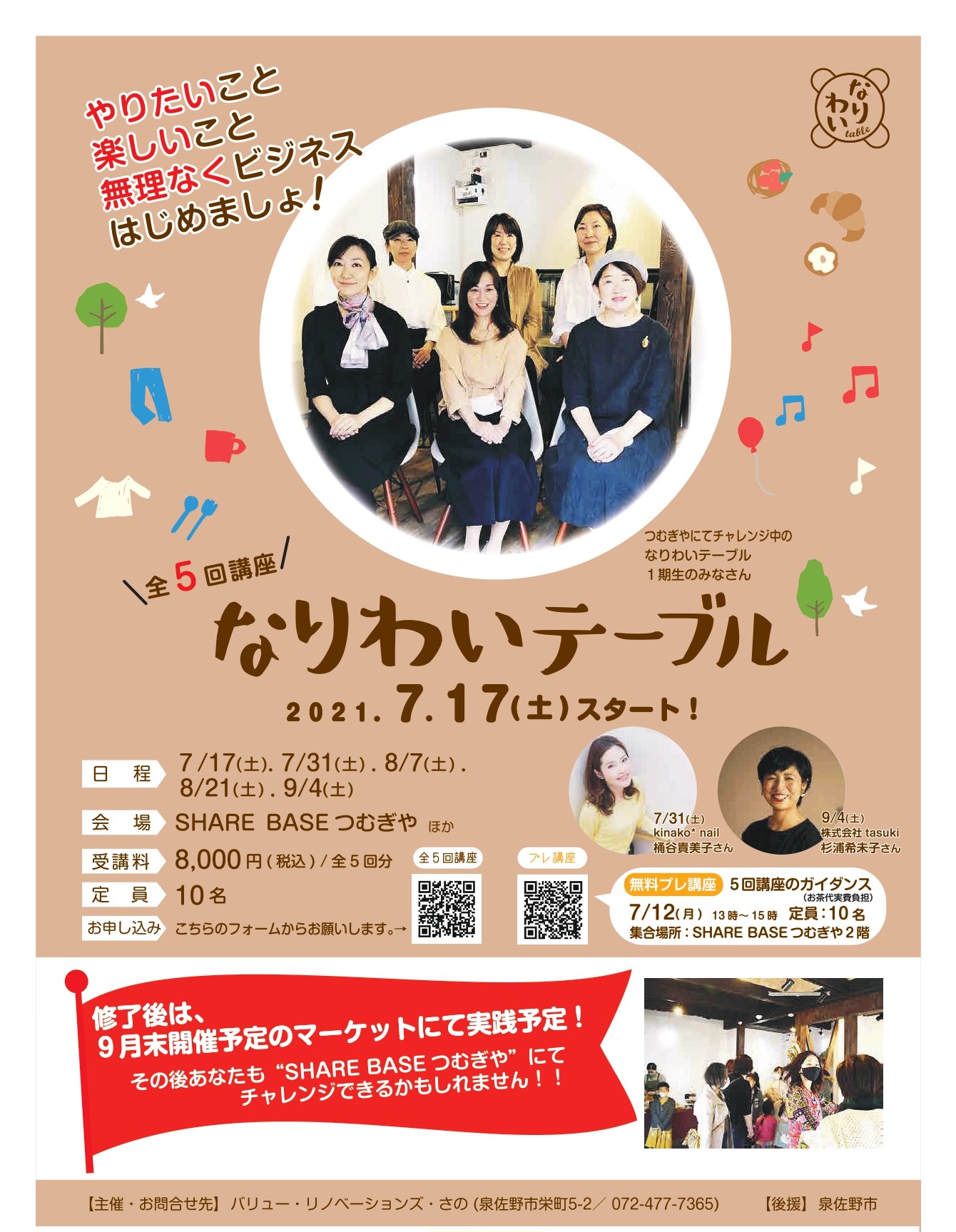 第4回(2021.8/21(土) 13時~15時)なりわいビジネスをカタチにしよう 場所:SHARE BASE つむぎや 2階